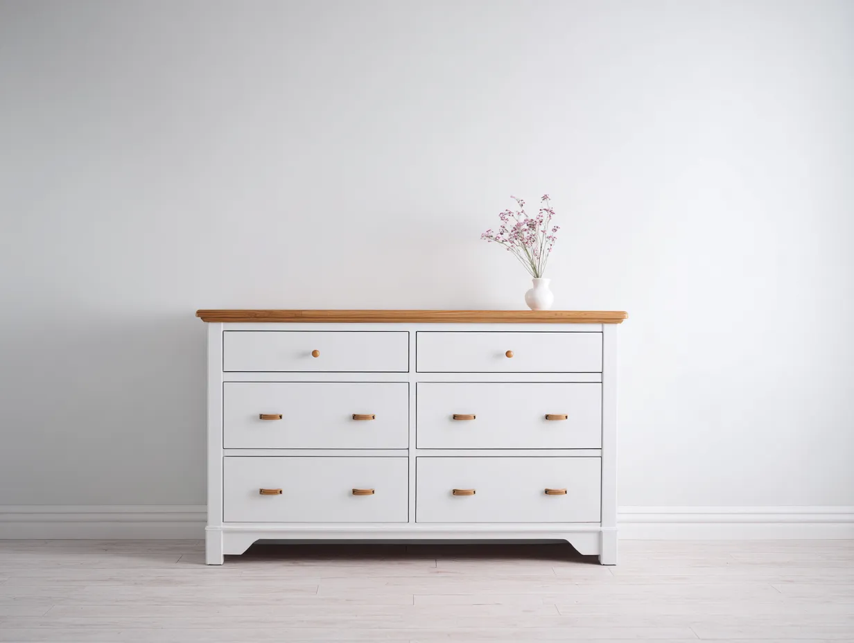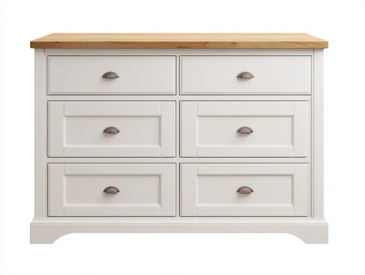 Commode-bois-132x44x86 cm-blanc-marron-style classique