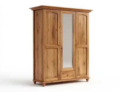 Cette armoire est conçue pour le rangement des vêtements dans la chambre. Sa façade associe des portes pleines et une porte centrale avec miroir, offrant une solution pratique pour l'organisation quotidienne.