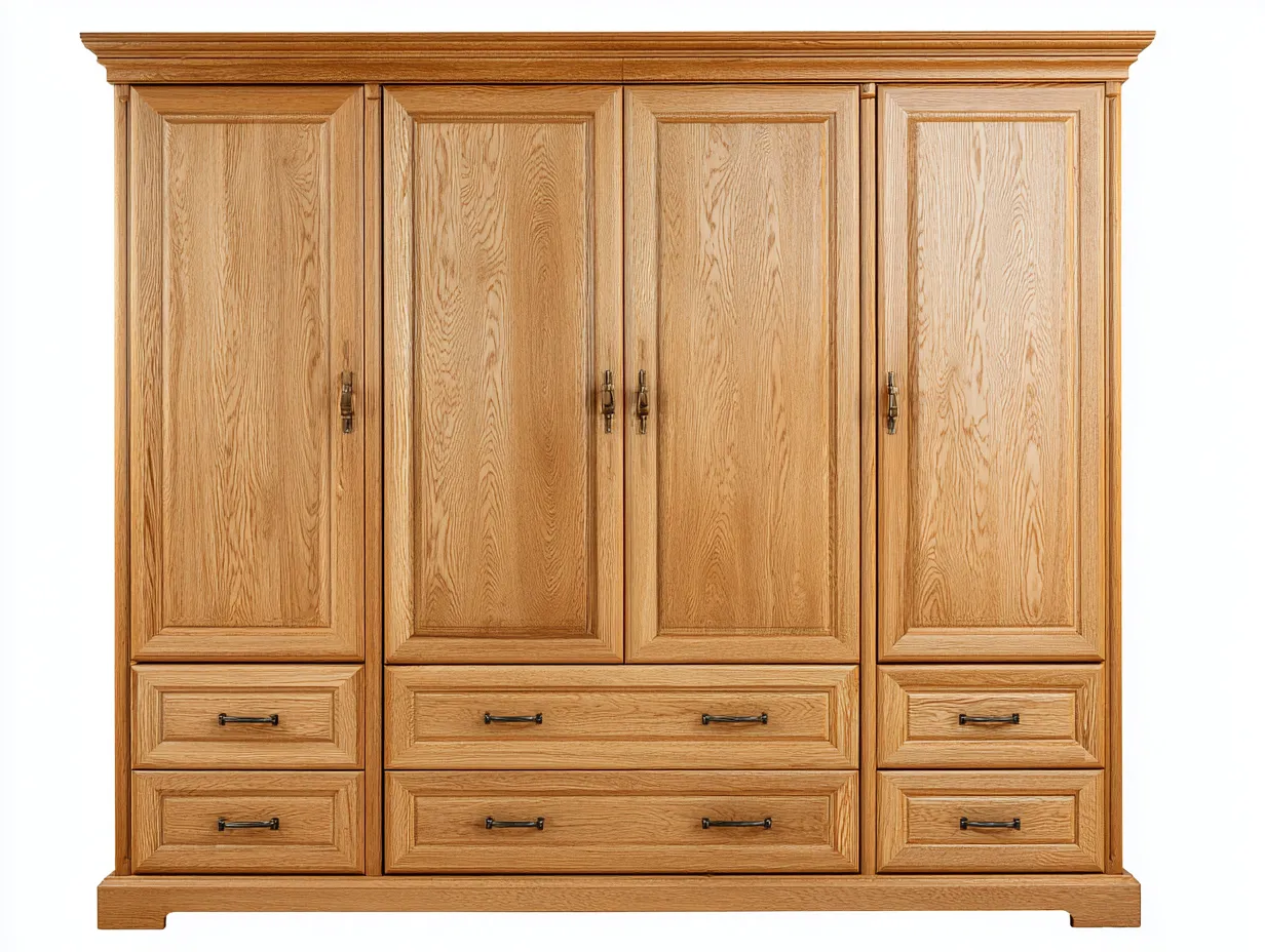 Cette armoire est conçue pour le rangement des vêtements et du linge dans la chambre. Sa structure fermée permet une organisation soignée tout en offrant une présence esthétique adaptée aux intérieurs résidentiels.
