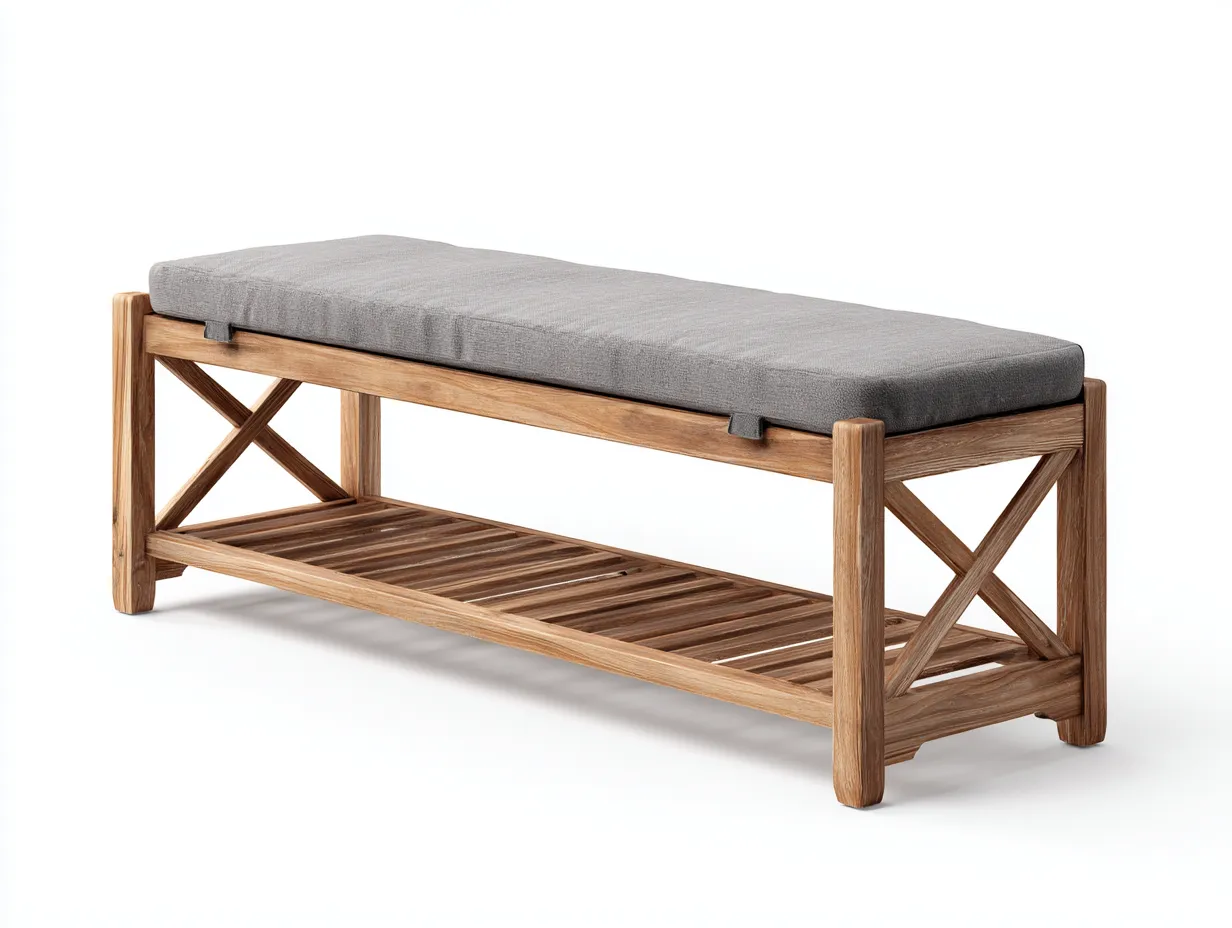 La conception ouverte assure une bonne stabilité et facilite l'intégration dans différents environnements extérieurs. Le coussin amovible améliore le confort d'assise.