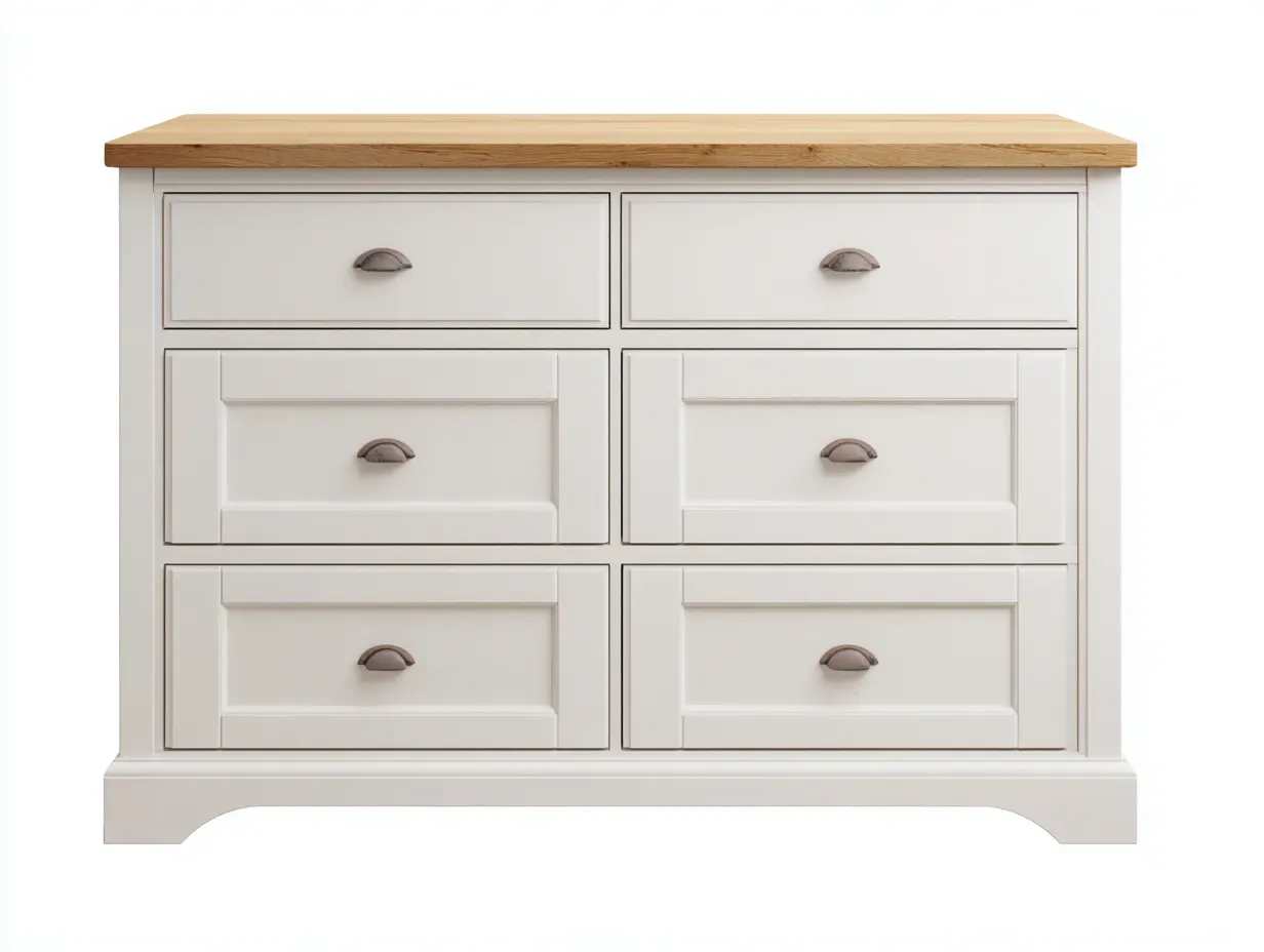 Les tiroirs permettent d'organiser efficacement le linge, les textiles et les objets personnels. Le plateau supérieur peut être utilisé pour disposer des éléments décoratifs ou des objets du quotidien.