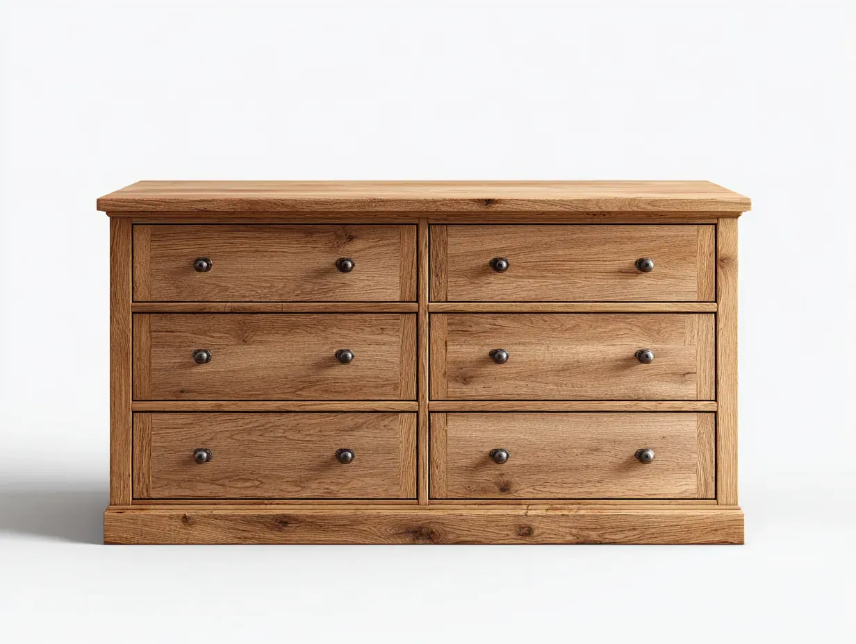 Cette commode est conçue pour le rangement des vêtements et des objets du quotidien dans une chambre ou un espace de vie. Sa structure large offre une utilisation pratique tout en conservant une apparence équilibrée.