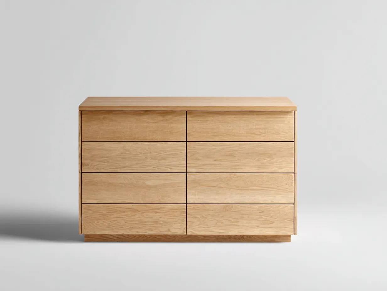 Cette commode est conçue pour le rangement des vêtements et objets du quotidien dans une chambre ou un espace de vie. Son design épuré permet une intégration harmonieuse dans différents styles d'intérieur.